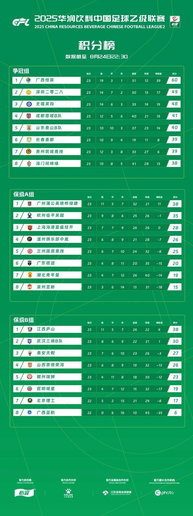 在本轮率先进行的其他冲甲组比赛中,无锡吴钩客场2比0击败贵州筑城竞技,深圳二零二八则在主场0比0战平长春喜都,如此,深圳二零二八积分49分,无锡吴钩积分48分,贵州筑城竞技和长春喜都积分都是39分,积分差距开始显现。